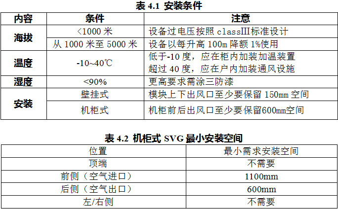 ZLDL-SVG可选择机架安装方式及壁挂式安装方式。为了方便日常运行时对ZLDL-SVG进行维护,除满足当地规定外,ZLDL-SVG进线端应保留足够空间,以方便维护人员进行线缆的接入。