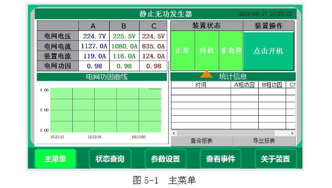 ZLDL-SVG通过集成在一块面板上的显示屏和按键进行操作。其中,5.1-5.6节为集中显示大触摸屏的操作,5.7-5.8为??樾∑恋牟僮?/p>