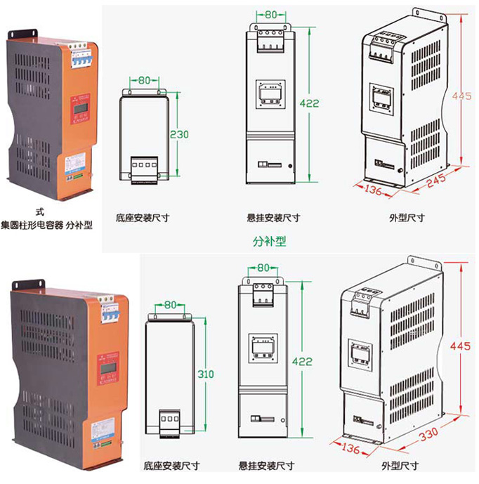 产品体积小、接线简单,随着用户电力负荷的增加,可以随时增加电容器的数量,改变了常规模式因接线复杂、一成不变的局限性,适应企业发展的需要,可以分期投资。