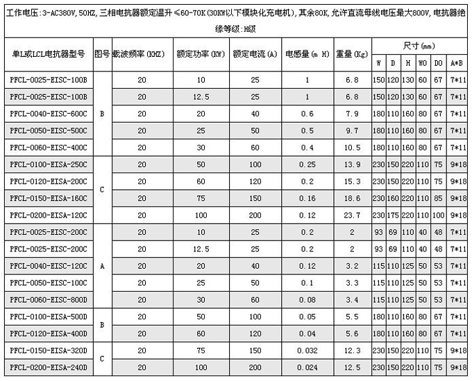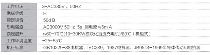 电动汽车直流充电机三相PFC电抗器技术参数: