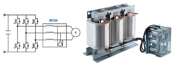 应用电路:异步电机变频传动,变频器输出侧,抑制及吸收开关频率纹波电流所衍生的高次谐波电流,降低长电缆行波反射dv/dt瞬变电压,矫正波形近似为正弦波,大大延长了输出电缆长度,从而降低电机涡流损耗及噪音,保护电机绝缘。